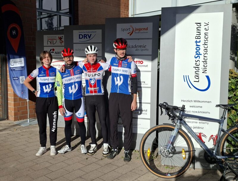 Im Oktober 2025 haben sich zudem einige unserer Trainer*innen weitergebildet: Hannah John, Björn Hansmann, Lunis Govers und Simon Keller (s. Bild v. l.) haben die Trainer C-Ausbildung beim Radsportverband Niedersachsen durchlaufen. Sie können somit mit neuem qualitativ hochwertigem Wissen unsere unterschiedlichen Trainingsgruppen anleiten.